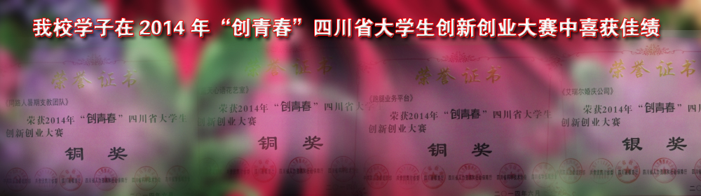 6月15日,由省委组织部、团省委、省教育厅、省人力资源和社会保障厅、省科协、省学联共同主办的“2014年创青春四川省大学生创新创业大赛”落下帷幕,我校选报的4件作品全部获奖,其中1件作品获得银奖、3件作品获铜奖。我校作为入此次围省级大赛的两所高职院校之一参与了最终评比。