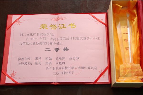 4月26日,省教育厅举办了“省高职院校会计技能大赛”,我校派出由张莉老师带队,张栓、聂思梦、熊婧、蔡喻婷同学组成的会计与审计专业代表队参赛,经过激烈比拼,荣获团体二等奖,团队总成绩排名全省第七,为学校争得了荣誉。