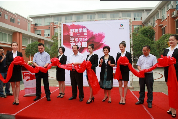6月11日上午,我校影视学院全体师生齐聚创慧楼广场,共同庆祝影视学院首届“艺术文化交流周”开幕式暨职业艺术教育中心揭牌仪式的举行。学校领导刘国钦、党华,校示范培育办公室主任向天华、影视学院院长范欣共同为开幕式剪彩并出席揭牌仪式。