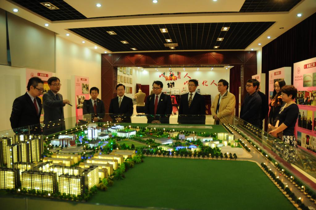 在罗晓东院长、曹启富副院长的陪同下,来宾参观了学校综合展示厅、文博艺术实践教学中心、数码艺术教学实践中心和图情大楼。