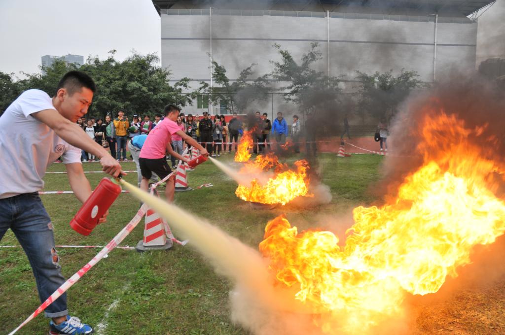比赛进行的同时,消防队官兵还对学校保安、宿管中心工作人员等进行了现场灭火指导。