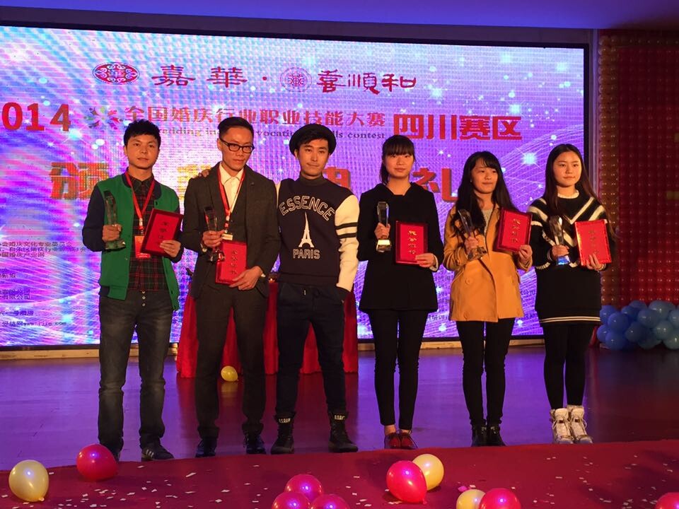 2014年度全国婚庆行业职业技能大赛四川分赛于11月17日至20日在成都喜宴中心迎宾一号酒店隆重举行。由我校推选的2013级摄影专业巫安琪、闫欣,2013级编导专业唐星月等7名学生在参与的“婚礼摄影师”和“婚礼摄像师”两项赛事中,共斩获摄影类3项银奖、2项优秀奖,摄像类2项优秀奖以及最佳创意奖、网络最佳人气奖2个单项奖。