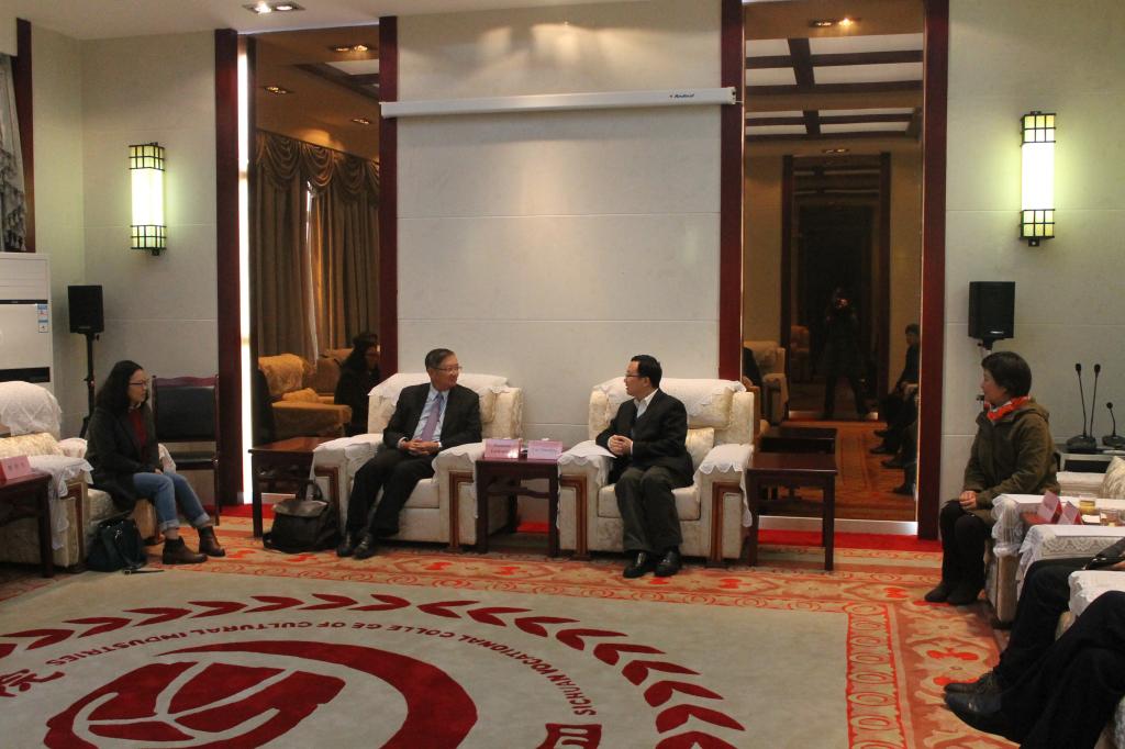 在会见中,罗晓东代表学校对李蓬民一行的来访表示热烈欢迎。罗晓东简单介绍了我校办学情况、专业特色及对外交流合作情况,并希望两校在学生交流、课程实习实训、教师培训互访等方面进一步拓展交流合作空间。李蓬民对文产院在短短8年间所取得的办学成就表示由衷赞叹。