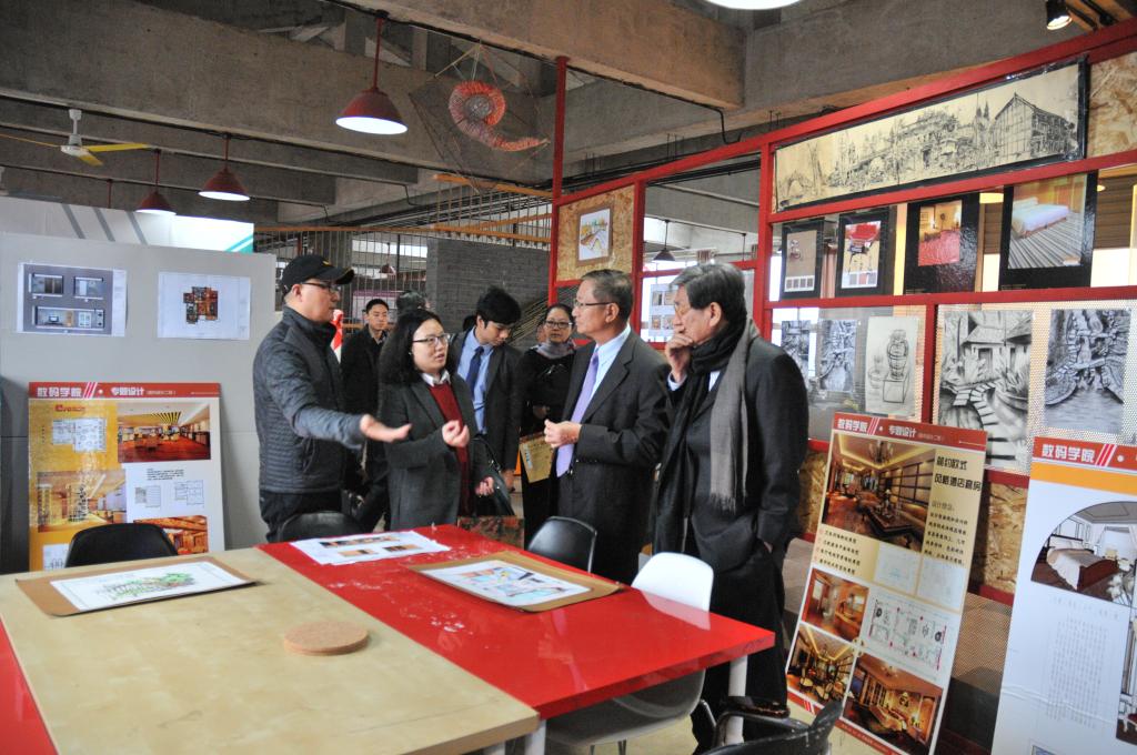 在数码学院、对外交流合作处的陪同下,来宾参观了学校图书馆、数码艺术实践教学中心和文博艺术实践教学中心。