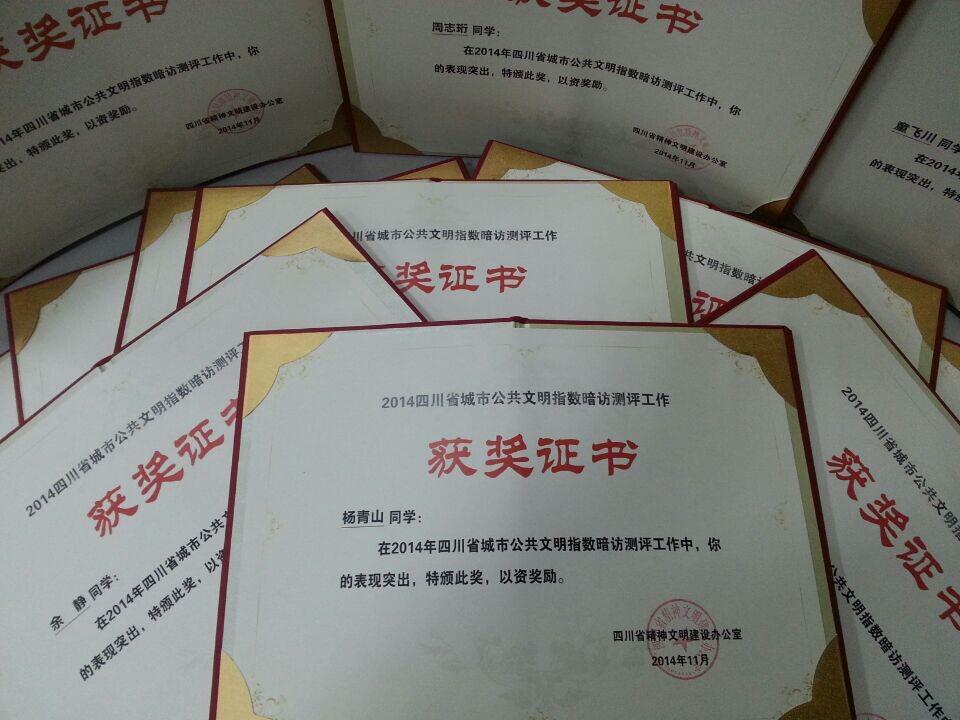 2014年11月,我校连续第六次应邀参与四川省文明办组织的“文明城市创建测评”工作。