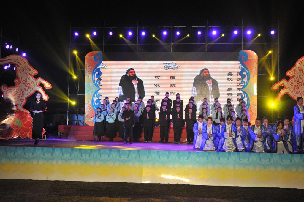 12月30日晚,校园内弥漫着浓浓的新年气息,学校足球场上搭建的舞台灯笼高挂、彩旗飘飘,“心迎新·梦飞‘羊’”2015年迎新晚会在一片璀璨华灯中、在阵阵悠扬音乐声中精彩上演。全体校领导亲临晚会现场,与师生们欢聚一堂。