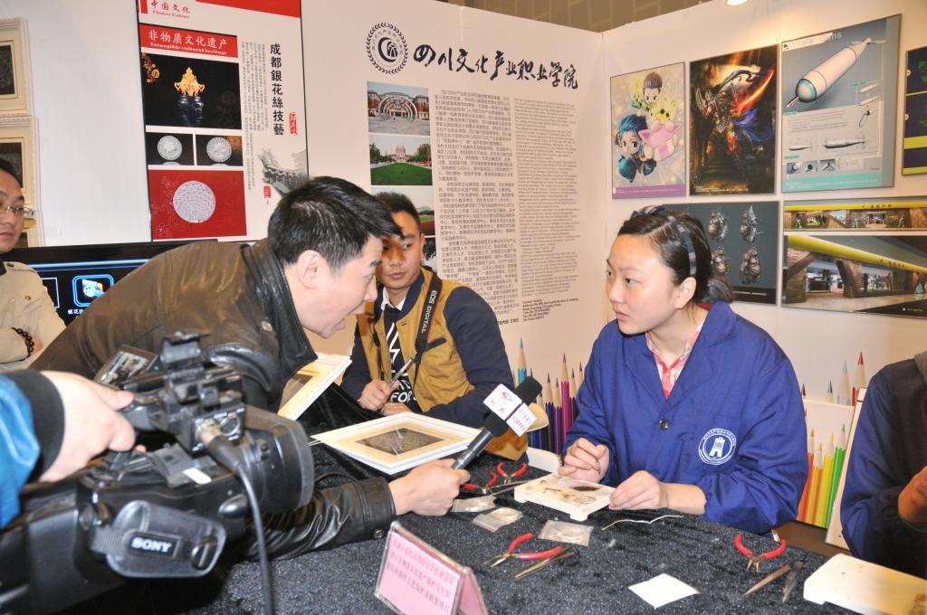4月9日至10日,我校在成都新国际会议展览中心参加了由四川省教育厅主办的四川省职业教育活动周、成都市职业教育活动月启动仪式暨2015年四川职业教育教学成果展。此次展会通过视频、展板、学生作品、学生现场制作等多种形式,集中展现了我校独特的办学理念、鲜明的办学特色、丰硕的办学成果和优美的校园环境。