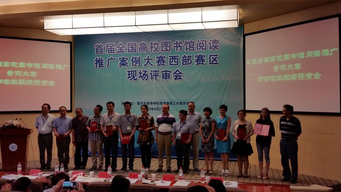 6月17日,从首届全国高校图书馆阅读推广案例大赛西部地区通信评审中遴选出的33件作品在重庆大学A区国际会议厅参加了现场评审。我校图书馆选送的出版物阅读推广案例---“《告别前,一位老教授的知心话》:关注大学生的成长”喜获二等奖并入围全国决赛,《开卷有益》获优秀奖。