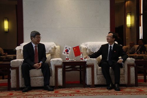 上午10时,留学生交流项目签约仪式在明慧楼217会议室正式举行。罗晓东在致辞中代表学校再次对宋守健校长一行的到来表示欢迎,并围绕我校拟定的合作意向展开介绍。他表示,与庆星大学的合作是我校第一个正式的国际交流项目,学校方面给予了充分重视。双方的合作基于当前文化大发展与“一带一路”倡议实施的背景之下,双方的跨越国界交流,必将碰撞出具有中、韩两国文化特色的创意思潮。双方可在学生留学、教师培训、文化设计、非物质文化遗产传承等多个领域开拓合作空间。