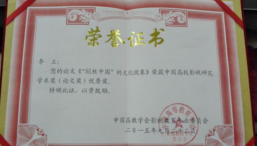 9月20-22日,中国影视艺术高层论坛暨中国高教学会影视教育专业委员会2015年年会在吉林大学举行。我校文化商学院青年教师李立受邀参加活动,其论文《屌丝中国的文化现象》从全国近300篇论文中脱颖而出,获得中国高校影视研究学术奖(优秀奖)。