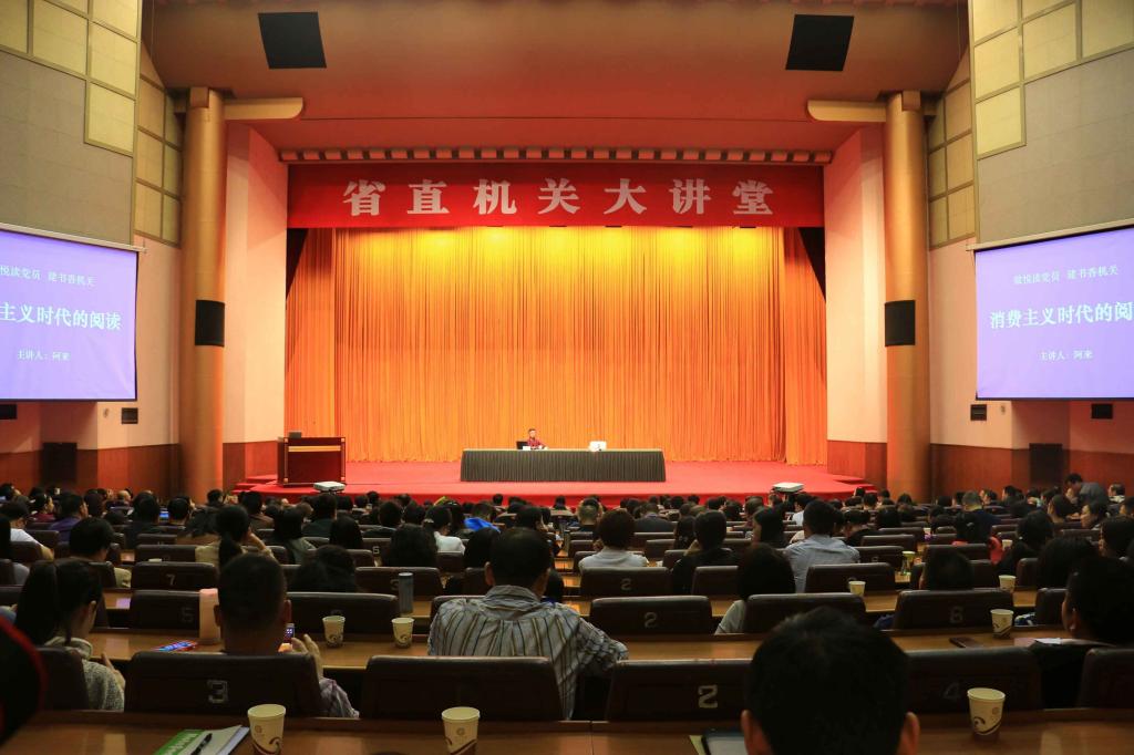 10月9日,省直机关工委举办了“读书月专题报告会”,我校组织师生代表20余人前往了金牛宾馆礼堂参加报告会。本次读书月专题报告会邀请了四川作家协会主席、著名作家阿来担任主讲人,讲座的题目为“消费时代的阅读”。