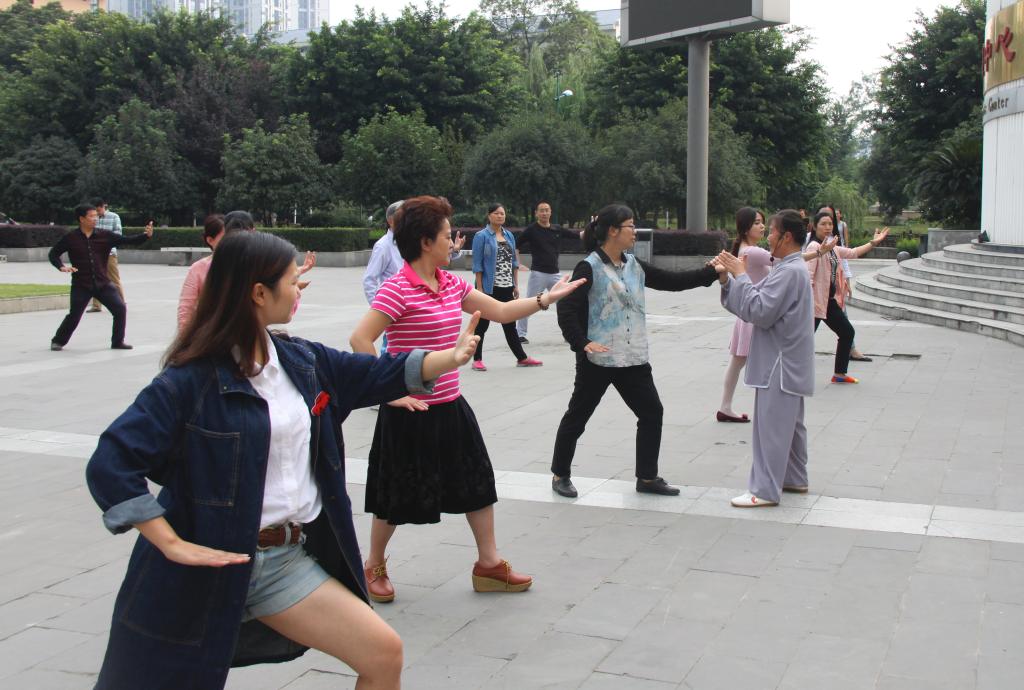 简短的开班仪式后,双流县东升镇文化活动中心的太极拳教练沈夫珍老师和助理赵琼老师开始第一堂培训教学课。两位老师从最基础的站姿、手法等入手,加上配乐动作示范,用理论教学结合实践示范,将大家带入太极情景之中,让大家体会太极的真谛和快乐。参训的教职工们用心观摩学习,时而驻足聆听,时而跟随教练一招一式的进行练习,接受教练耐心的纠姿、训导,整个过程井然有序。