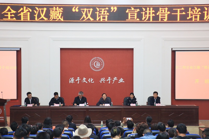 仪式在庄严的国歌声中拉开帷幕。罗晓东向培训班的举办表示热烈祝贺。他表示,在藏区新形势下开展汉藏“双语”宣讲人才的培养和培训工作对加强民族团结、维护祖国统一有着重要意义。举办全省第二期汉藏“双语”宣讲骨干培训班是落实《关于深入推进“法律进寺庙”的实施意见》和《2016年藏区宣传思想文化工作要点》的具体举措,将为我省推进千名汉藏“双语”联合宣讲骨干培训工程提供理论支撑与智力保障。