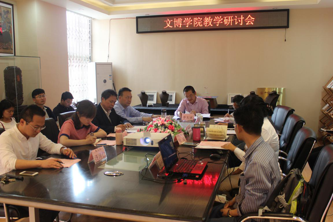 近日,文博学院在创慧楼召开了教学研讨会,学校副院长李太斌、教务处副处长李成林、文博学院长岳湛及文博学院各专业专兼职教师代表共计20余人参加会议。