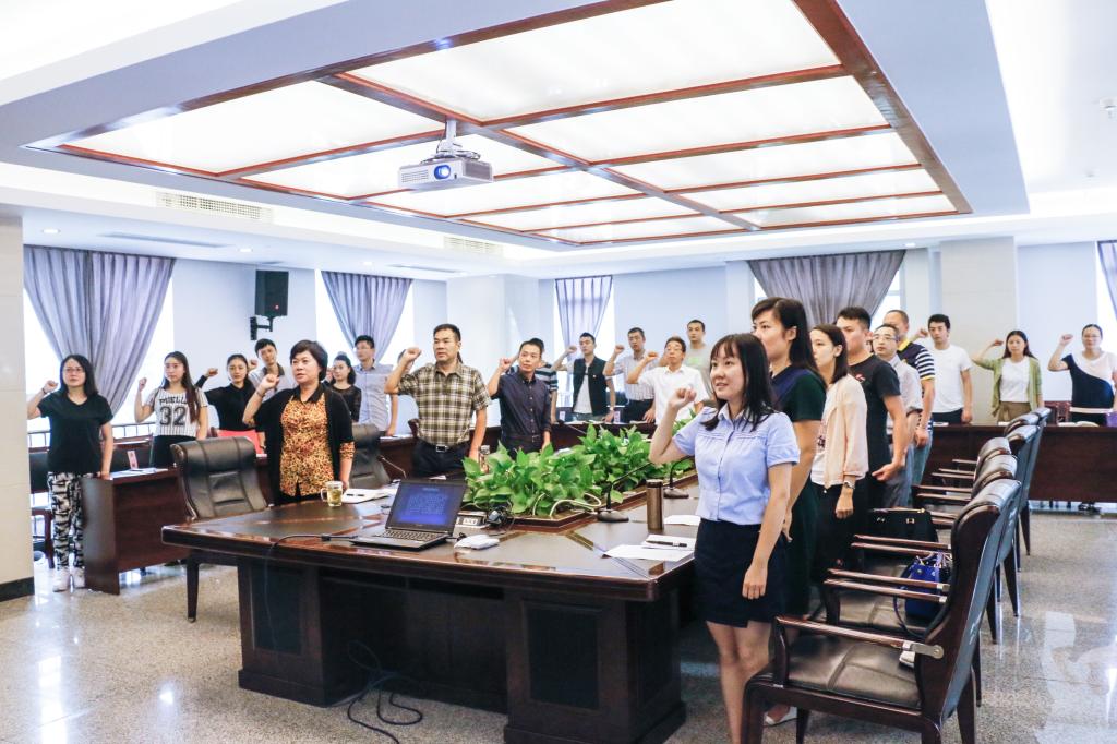 党华首先带领大家进行了教师宣誓。全体教师代表起立,高举右手,庄严宣誓:“我是一名光荣的人民教师,我庄严宣誓:忠诚党的教育事业,贯彻国家教育方针,履行教师神圣职责。修身立德,为人师表;终身学习,严谨治学;关爱学生,教书育人;传承文明,勇于创新;爱国守法,爱岗敬业;廉洁从教,乐于奉献。为每位学生的美好未来,我愿奉献全部智慧和力量!”,宣誓铿锵有力,掷地有声。