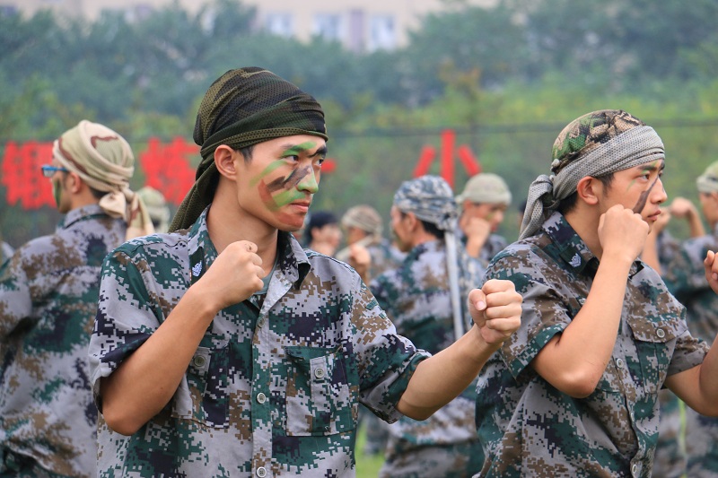 随后,学生们的军事表演将演出推上高潮。军训学生演绎的花式列队、手语操、军体拳,以及“三防”急救军事表演,将军训学生们14天的艰苦训练化为此刻的铁骨与柔情。