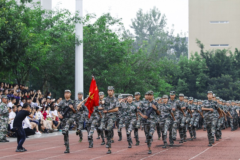 汇报表演在庄严的《中国人民解放军军歌》中正式拉开帷幕,身着迷彩服的同学们以整齐的列队、挺拔的军姿接受检阅。国旗方队与27个新生方队依次走过主席台,步履之间,坚毅尽显。