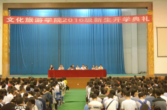 9月26日上午,文旅学院2016级新生开学典礼在艺体中心举行。学校副院长曹启富、文旅学院院长李晓波、党总支副书记王维姝、副院长梁中正、全体教职工及2016级新生参加开学典礼。