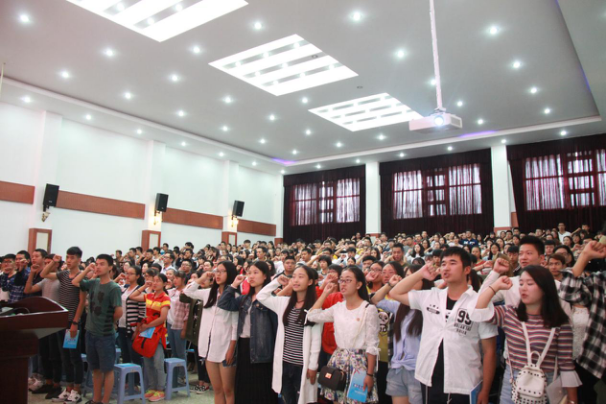典礼上还播放了由学院创新创业团队Aone精心制作的学院优秀影视作品集锦《The First》,引来阵阵叫好。Aone影视工作室负责人,2015级电视节目制作专业王杰代表学长学姐向新生表示欢迎,鼓励大家明确目标,敢于创新创业,认真参加专业学习与社会实践。随后,他带领新生庄严宣誓,谨记院风、学风的“六要·六不”文明公约。新生代表2016级摄影摄像专业吴璐池表达了成为一名文产人、影视人的激动与自豪。