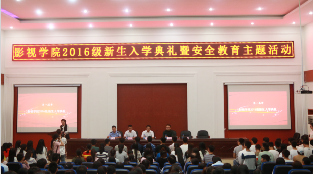 9月26日上午,影视学院2016级新生入学典礼暨安全教育主题活动在第二教学楼105举行。学校副院长曹启富,影视学院院长范欣,党总支副书记黄自立,锦江监狱教管办主任、影视学院法制辅导员谢唐,家长代表,各科室负责人,全体专职教师及2016级新生共同参加了入学典礼。