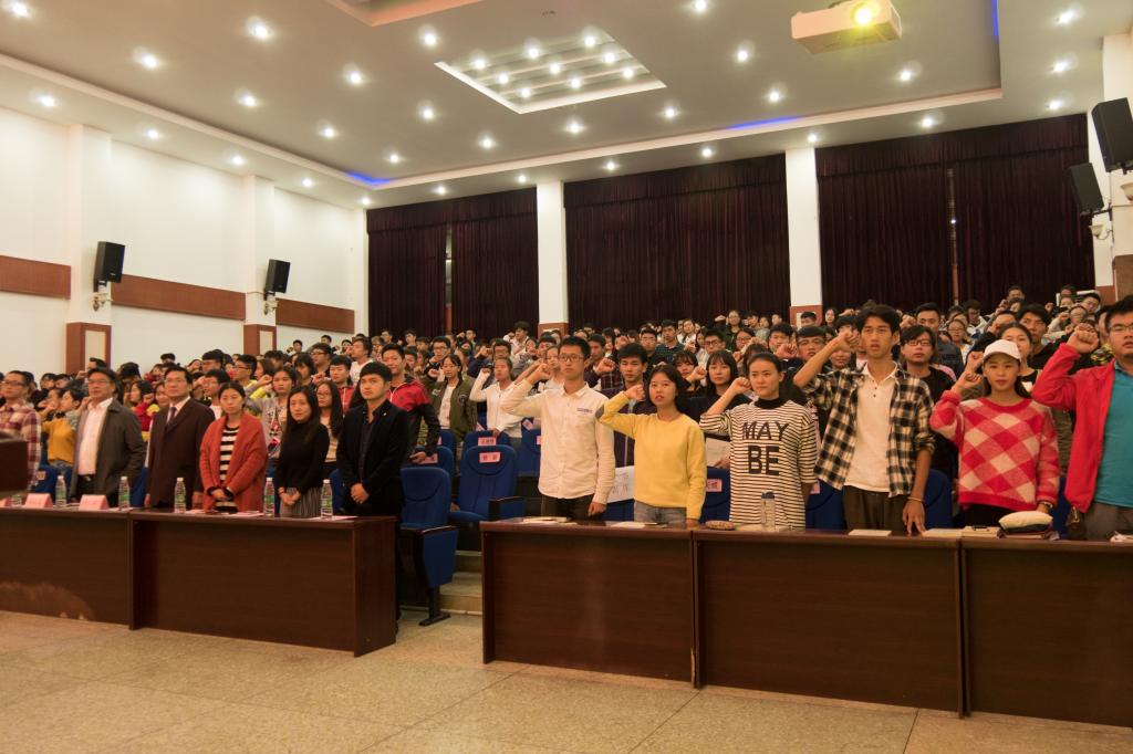 在影视学院分团委学生书记廖涛的带领下,全体同学就积极践行习近平总书记向全国青年大学生提出的“八字真经”进行庄严宣誓。