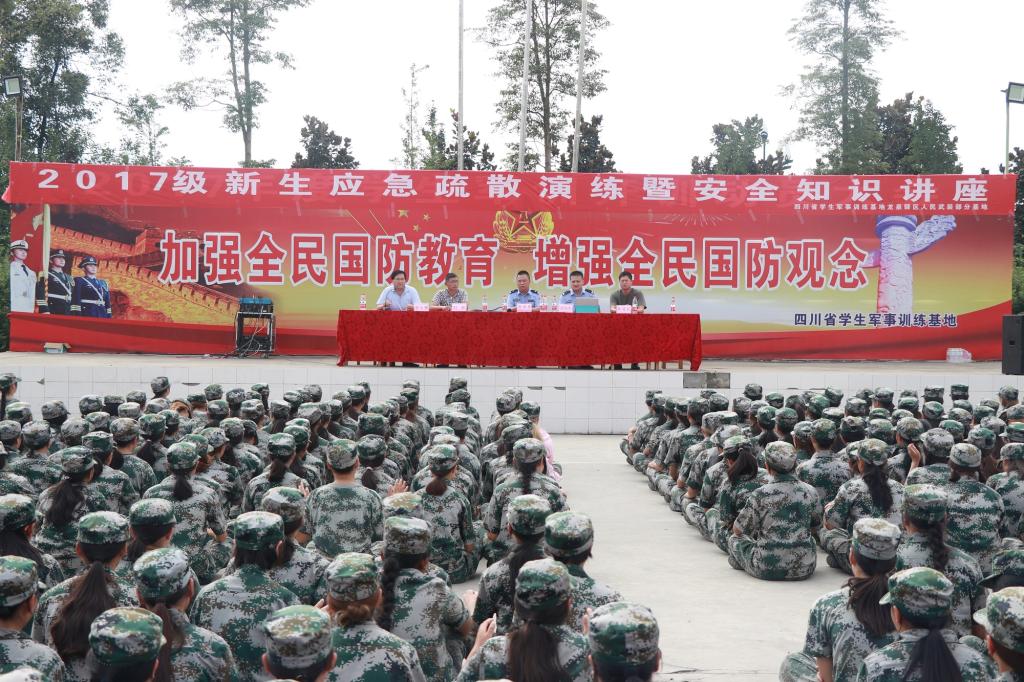 为积极营造安全稳定的校园环境,进一步提高新生的安全防范意识和应对突发事件的自救能力,9月19日,我校在成都星光国防教育训练中心举行了2017级新生安全教育讲座暨应急疏散演练。学校特邀双流区公安局协和派出所副所长杨国勇、警官翁用津作安全教育讲座。讲座由学工部副部长、学生公寓中心主任唐天卿主持。