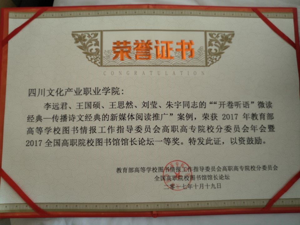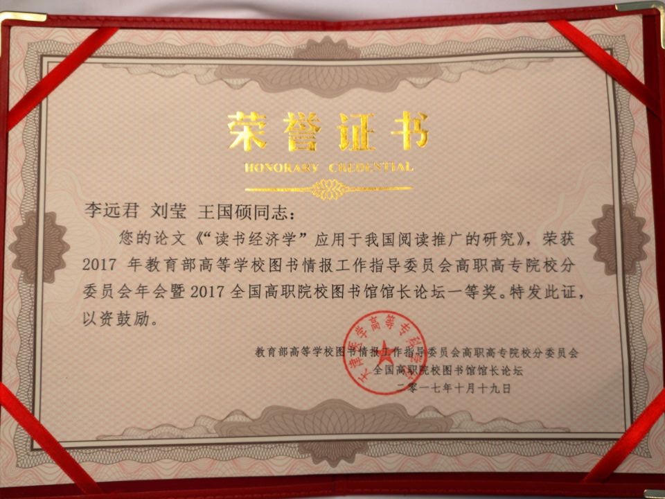 我校选送的论文“‘读书经济学’应用于我国阅读推广的研究”和案例“‘开卷听语‘微读经典’——传播诗文经典的新媒体阅读推广’”双双分获大赛论文和案例一等奖;案例“注重文化引领 促进内涵建设——基于CIS的图书馆‘开卷听语’文化形象定位及文化形象塑造”喜获大赛二等奖。