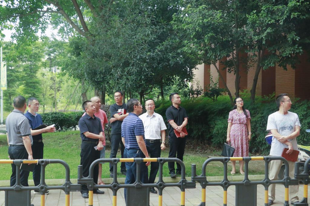 罗晓东一行针对图情大楼墙砖脱落问题,要求责任部门加强通道管理,研究制定多种解决方案