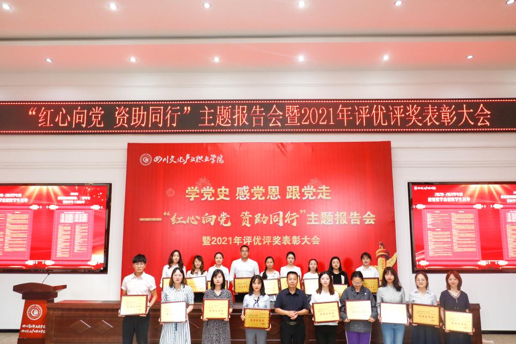 随后,大会宣读了《四川文化产业职业学院关于2020-2021学年度校级奖学金表彰的决定》、《四川文化产业职业学院关于表彰2020-2021学年度先进班集体、三好学生、优秀学生干部的决定》,肖必恒副院长为获奖班级和学生颁发了荣誉证书。