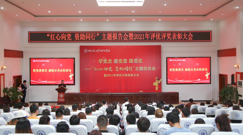 在中国共产党成立100周年之际,为深入开展“四史”教育,进一步提升大学生思想政治教育工作的实效性,持续加强我校学生资助政策宣传,切实提高资助育人实效,全面落实立德树人根本任务。6月17日下午,我校在二教105多功能厅召开“红心向党 资助同行”主题报告暨2021年评优评奖表彰大会。校党委委员、副院长肖必恒出席会议并讲话。