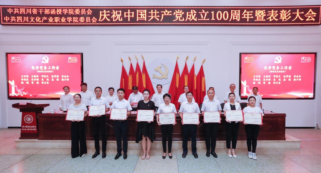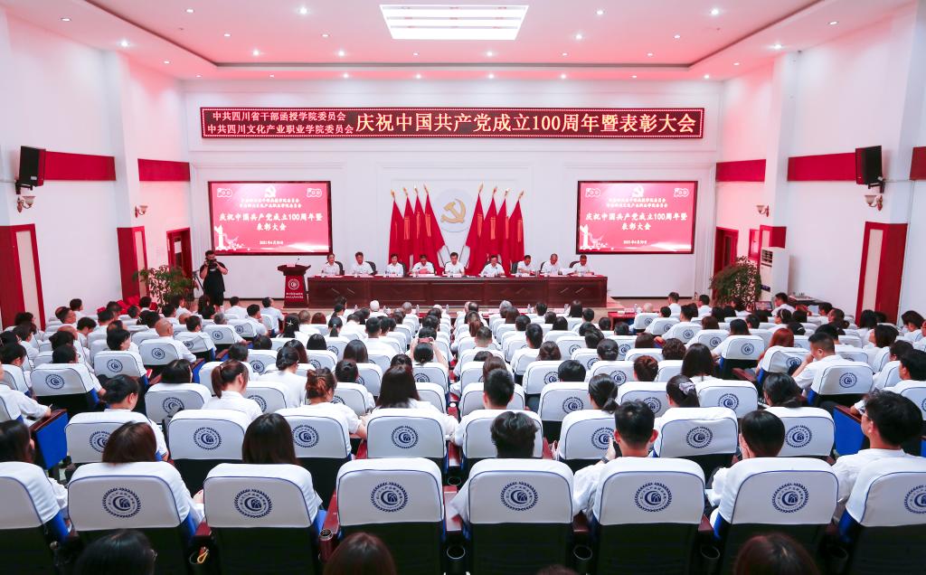 6月30日上午,四川省干部函授学院 四川文化产业职业学院隆重召开庆祝中国共产党成立100周年暨表彰大会。全体校领导、50年以上党龄老党员代表出席会议。党委副书记、纪委书记何强主持会议。