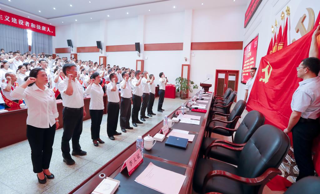 会议集体重温入党誓词。全体中层干部、党总支(支部)委员、直属党支部全体党员、“两优一先”表彰人选参加会议。非党员中层干部、民主党派及无党派人士代表列席会议。