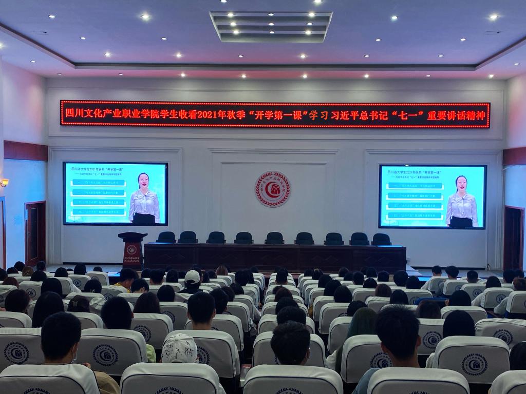 为进一步学习宣传贯彻习近平总书记在庆祝中国共产党成立100周年大会上的重要讲话精神,我校学生工作部、校团委于9月5 日晚8:30组织230名学生干部代表集中收看四川省大学生2021年秋季“开学第一课”——学习习近平总书记“七一”重要讲话精神。