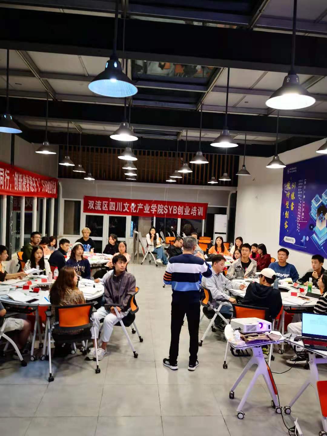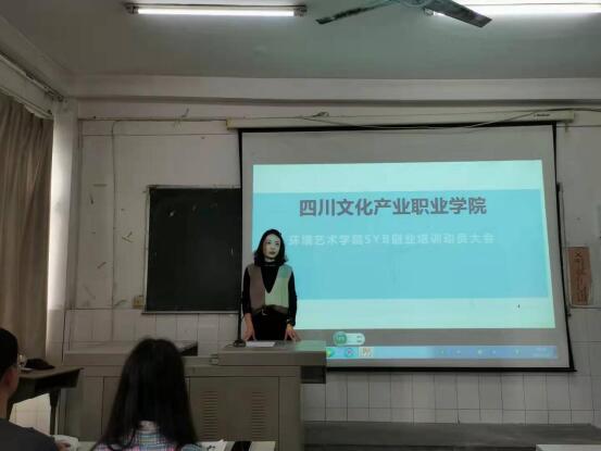 为贯彻落实人社部《关于实施职业技能提升行动创业培训“马兰花计划”的通知》精神,坚持创新驱动发展战略,扎实推进我校“双创”工作,引导大学生紧跟“大众创业、万众创新”时代大潮。10月9日下午,四川文化产业职业学院2021年“SYB”创业培训第二期开班仪式在一教601举行。校团委双创工作指导老师姜佳琳、环境艺术学院党总支副书记唐蓉、培训指导老师廖万彬参加了开班仪式。