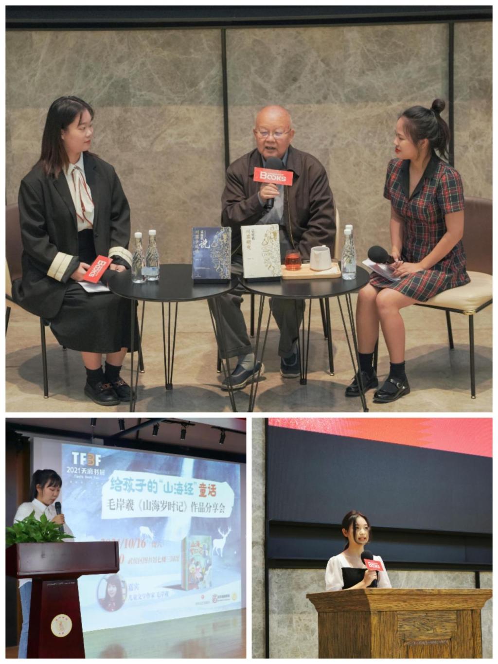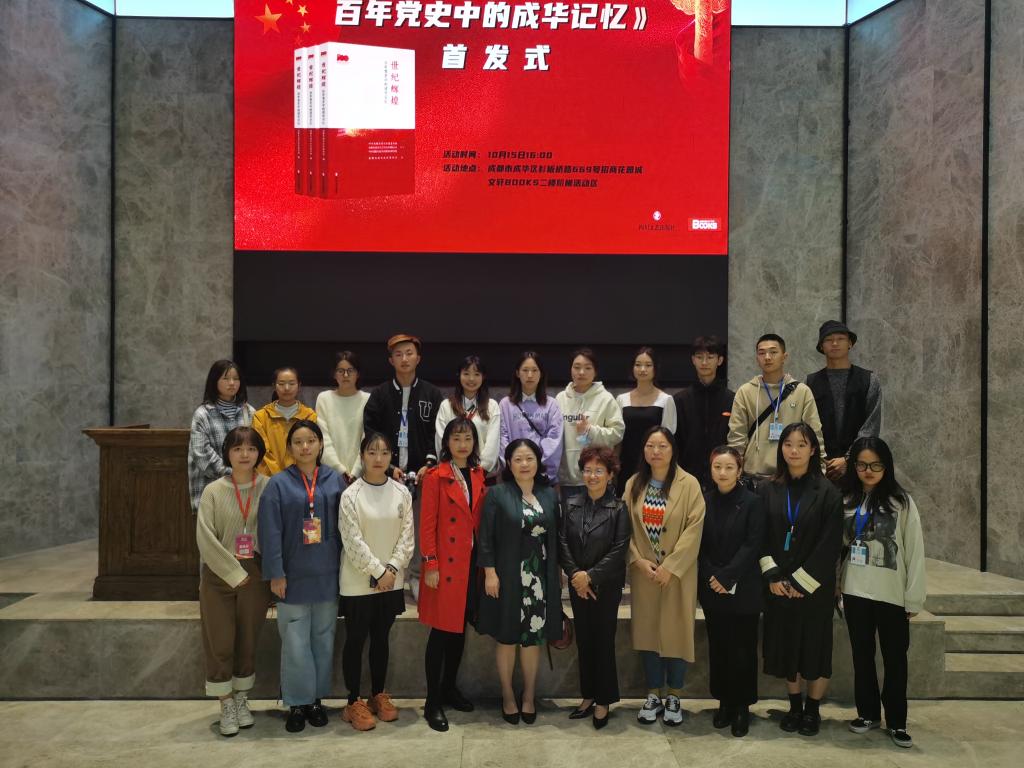 应四川文艺出版社之邀,我校学生以担任作家分享会主持人、书展现场导购、活动专职摄影三种方式参加了天府书展。大学生记者团团长李若兰和胡嘉琪两位同学共同担任成都街巷中的川香风味活动主持人,19级出版商务专业学生张颖担任给孩子的“山海经”童话——毛岸羲《山海岁时记》作品分享会主持人,20级出版商务专业学生何姗担任《世纪辉煌:百年党史中的成华记忆》首发式活动主持人;大学生记者团成员张洪铭、宋燕红,出版商务专业的李欣悦3人担任主持人助理;大学生记者团成员程浩、王文胤担任新会展三星堆展区现场导购;大学生记者团技术中心13名同学担任四川文化出版社作家分享会专职摄影,为主办方和各大媒体供图。