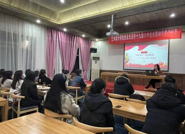 为准确把握党的十九届六中全会精神的丰富内涵、精神实质和实践要求,切实用全会精神统一思想、统一意志、统一行动,12月3日下午,艺术设计学院党总支在帽盒山会议中心召开党的十九届六中全会精神专题学习会。