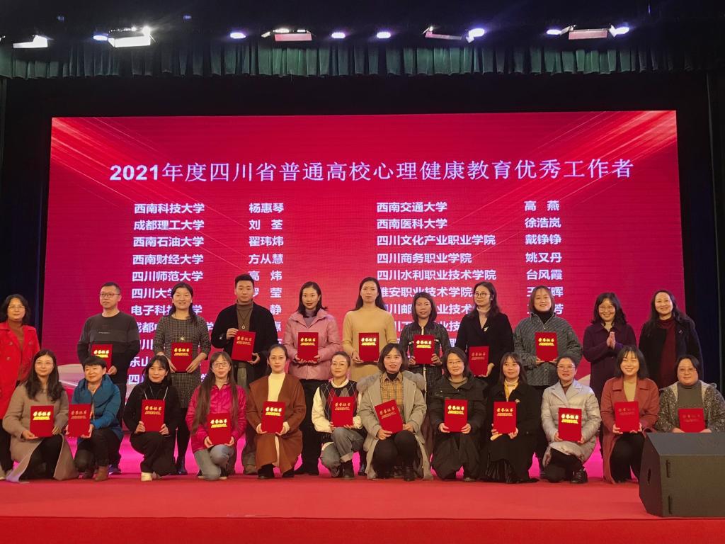 戴铮铮老师(前排左5)荣获“2021年度四川省普通高校心理健康教育优秀工作者”
