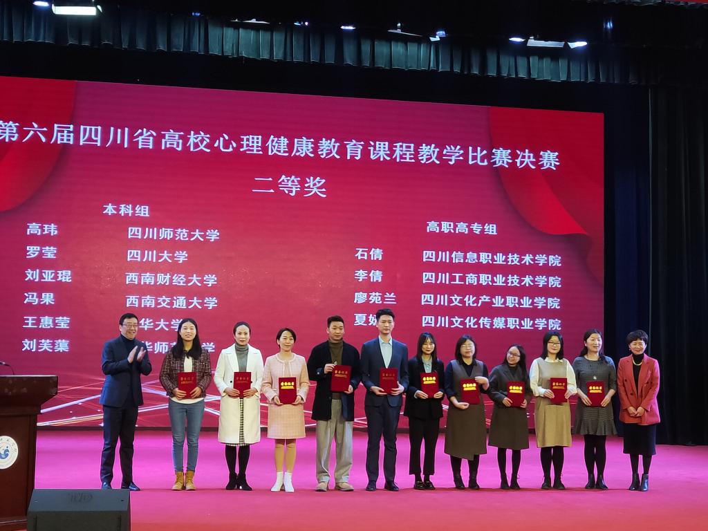12月8日—10日,由四川省教育厅主办,四川省心理学会高校心理健康教育专委会承办的“第六届四川省高校心理健康教育课程教学决赛暨2021年四川省心理学会高校心理健康教育专委会年会”在乐山师范学院举行。我校通识教育部教师廖苑兰荣获教学决赛二等奖(高职高专组),戴铮铮荣获“2021年度四川省普通高校心理健康教育优秀工作者”。