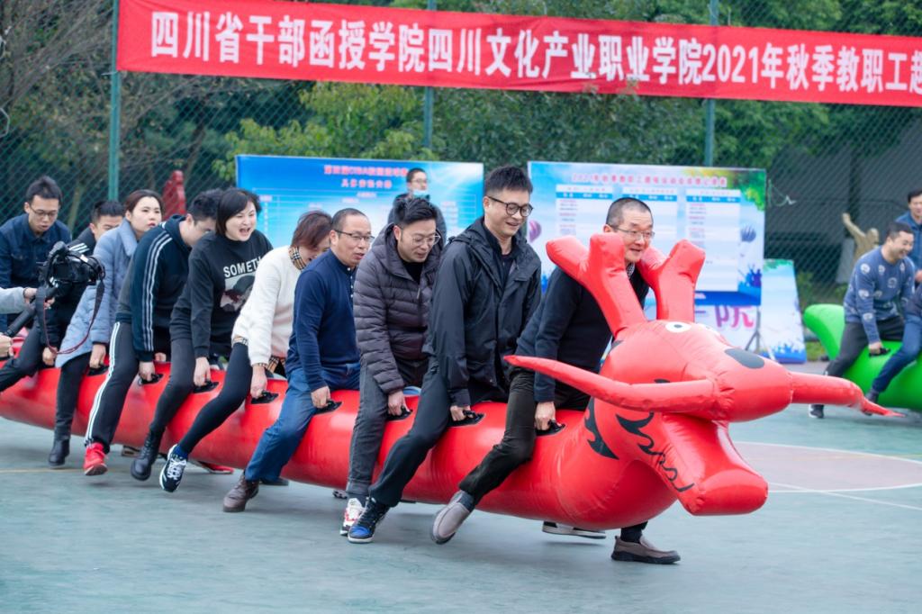 伴随着有节奏的响亮号子声,趣味比赛成绩即刻揭晓。由融媒和文商分工会组成的“自强不息代表队”巧摘桂冠;由艺术设计、文博和文旅分工会组成的“锐意进取代表队”喜获亚军;由党群、后勤和文信分工会组成的“飞跃梦想代表队”荣获第三名;由行政分工会组成的“励精图治队代表队”荣获第四名。