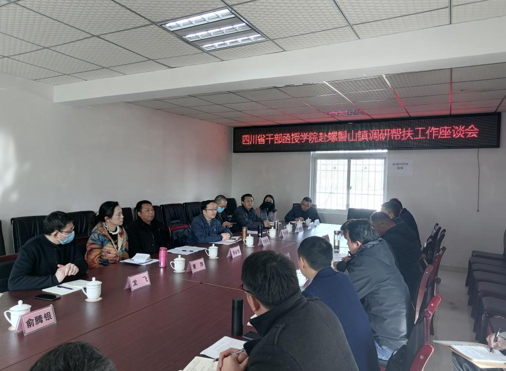 调研结束后,罗晓东一行与县、镇有关负责同志座谈交流,在认真听取和详细了解我校对口帮扶相关工作情况后,罗晓东介绍了学校基本情况,以及学校近年来实施“一体两翼、双轮驱动”发展战略,推进宣传干部培训和文化产业高职教育两个版块工作取得的工作成效。