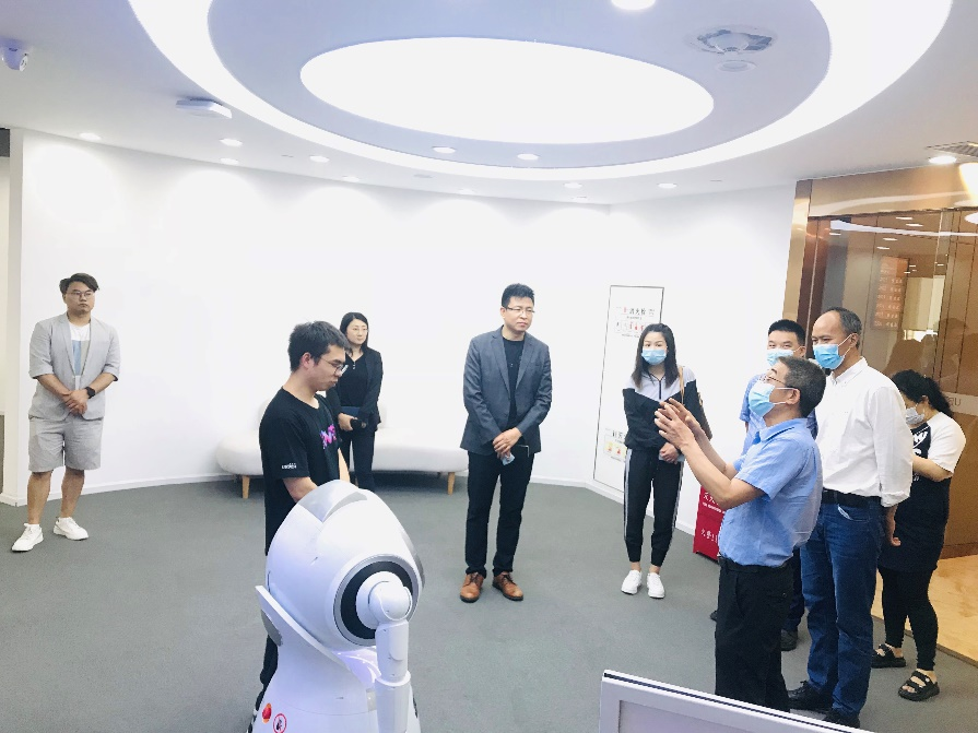 陈敬贵一行参观了成都熙越科技有限公司的工作场地,看望了在企实习学生,现场询问了学生实习和就业情况,学生对公司实习氛围很满意。随后赶到了优必选科技股份有限公司,参观了人工智能应用场景,现场跟机器人进行了互动,了解了优必选在机器人领域的成果。在走访过程中,陈敬贵一行分别同两个公司负责人开展了座谈交流,他对公司一直以来对我校学生实习就业工作的大力支持表示感谢。他指出:此次调研旨在促进双方搭建有效平台,推动校企深度合作,更好地共同服务于国家发展战略和地方经济社会发展。公司负责人都表示,愿本着“相互支持、资源共享、精诚合作、互惠双赢”的原则,深度参与学校人才培养过程,为学生提供合适的实习就业岗位。