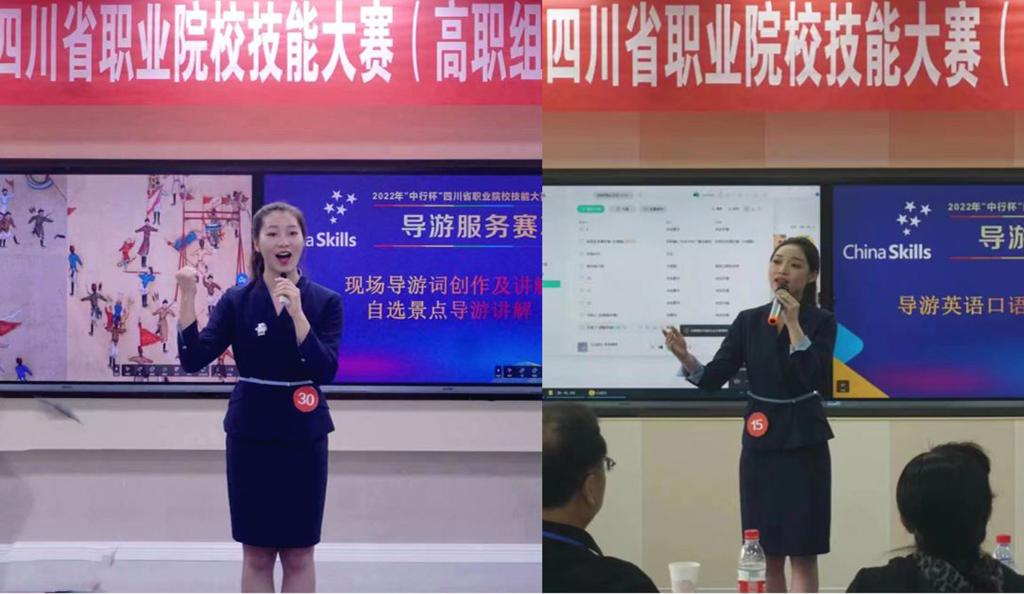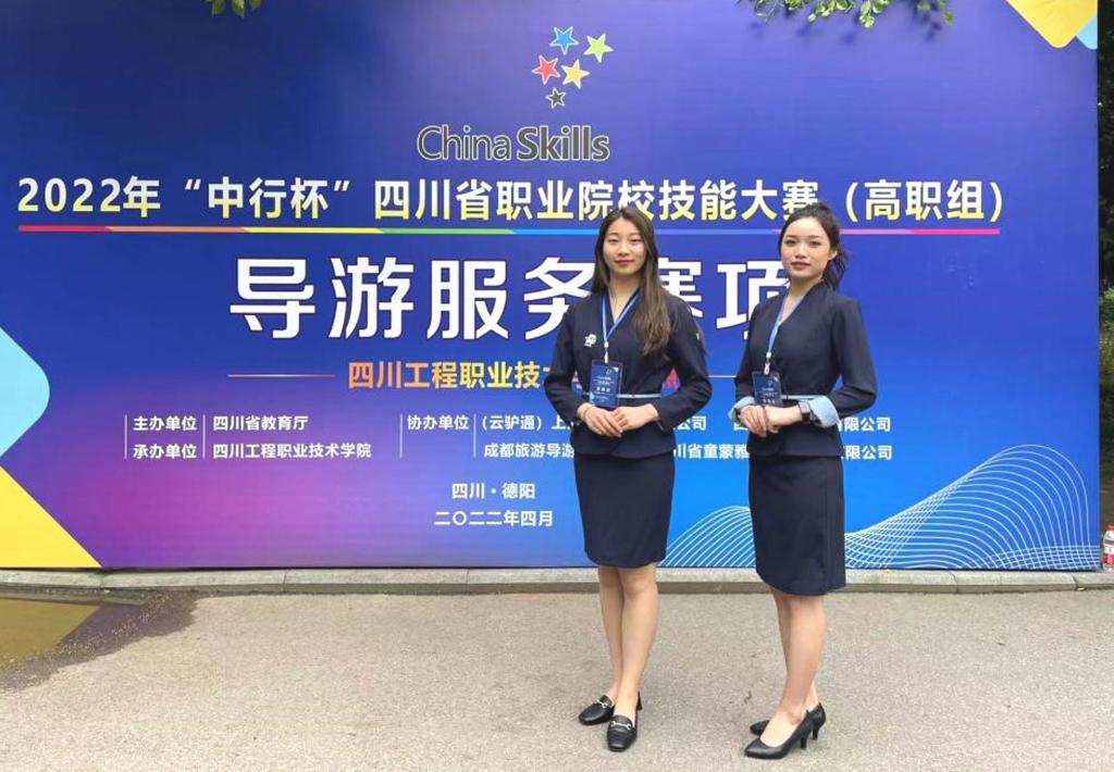 4月15日至16日,由四川省教育厅主办的2022年“中行杯”四川省职业院校技能大赛导游服务赛项在四川工程职业技术学院举行,来自全省36所高职院校的68名学生参加了比赛。我校文化旅游学院旅游管理专业学生达鑫月、代露雨分别以总分第三名和第四名的成绩斩获一等奖,刘少林、张敏获评“优秀指导教师”。我校选手还将代表四川省参加全国职业院校导游服务技能大赛。