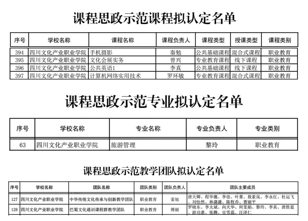 我校根据省教育厅文件要求组织开展校级遴选申报,经教学单位申报,专家评审,学校审查,择优推荐《手机摄影》《文化会展实务》等申报省级示范项目。经教育厅评审,《手机摄影》《文化会展实务》等4门示范课程、旅游管理示范专业1个及中华传统文化传承与创新教学团队等2个示范教学团队获准认定。
