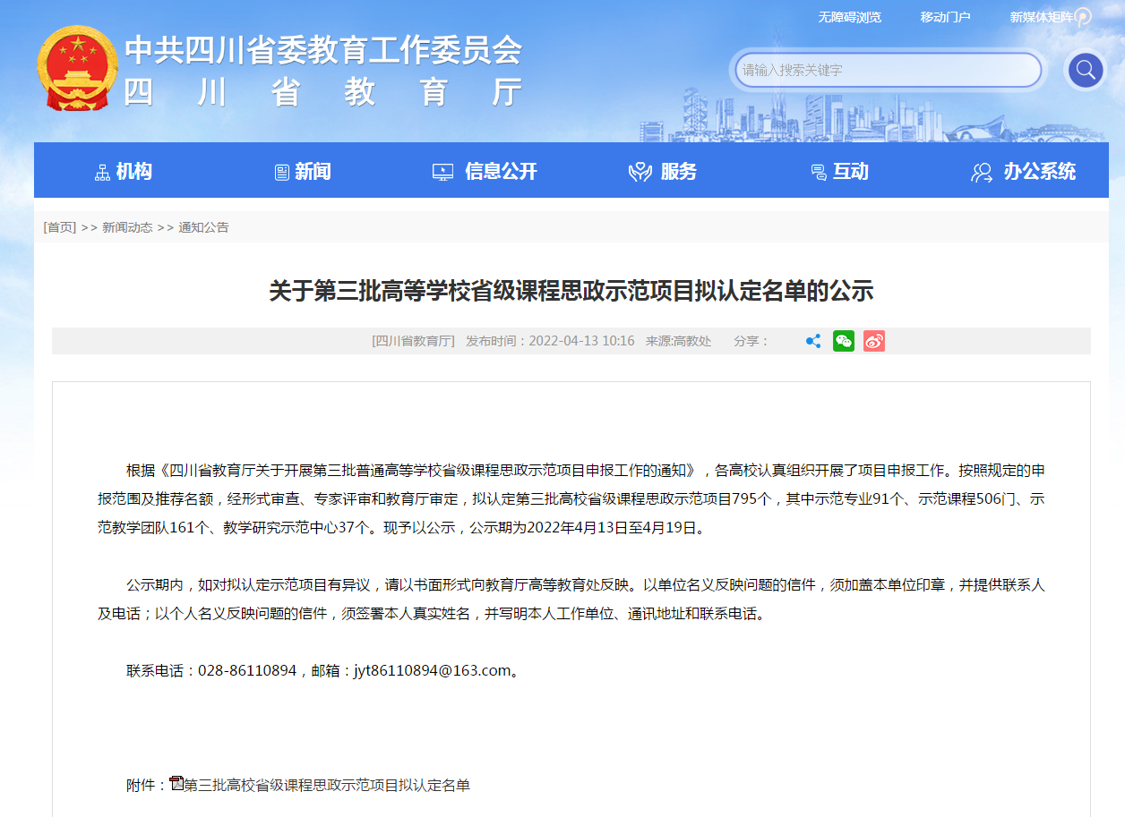 近日,教育厅发布《关于第三批高等学校省级课程思政示范项目拟认定名单的公示》,我校推荐申报的《手机摄影》等7个项目获省级课程思政示范项目认定。