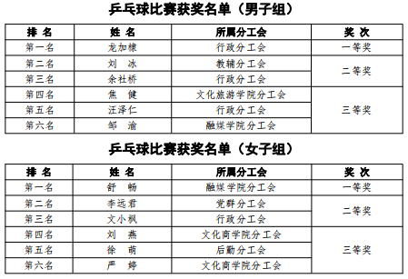 11月16日,我校2022教职工运动会乒乓球赛在艺体中心精彩落幕。行政分工会的龙加棣老师和融媒学院分工会的舒畅老师分获男子组和女子组冠军。