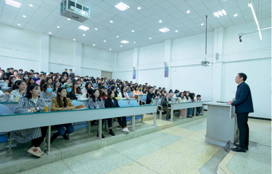 近日,我校大学生记者团2022年纳新工作全面结束,迎来了第十七届大学生记者团第一次新生见面会。此次会议于第二教学楼106召开,校党委委员、副院长朱霖出席会议,宣传统战部主要负责人主持会议。宣传统战部新闻中心指导老师和全团共一百六十余人参加了见面会。
