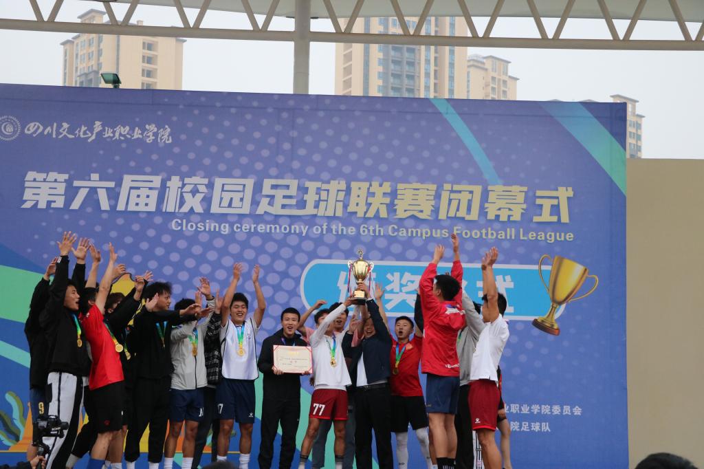 本届校园足球联赛由校团委主办,校学生会承办,各二级学院分团委协办,共有来自各二级学院和教职工代表队的7支队伍参赛。经过紧张激烈角逐,教职工代表队与文化旅游学院代表队挺进决赛。决赛中,文化旅游学院球员们配合默契,多次占领控球优势,全队士气昂扬,配合默契无间。而教职工代表队也毫不懈怠,配合有序,接连进球,奋起直追。绿茵场上,队员们身姿矫健,尽情挥洒激情与汗水。文旅学院最终以6:5的比分问鼎本届联赛冠军,教职工队获得亚军。而在争夺季军的比赛中,艺术设计学院1:1逼平了实力不容小觑的文化商学院,并在点球大战中取得胜利,斩获季军。
