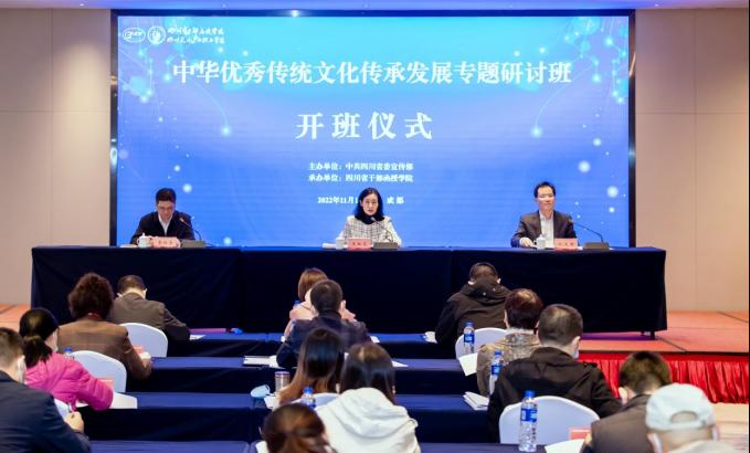 11月14日上午,由省委宣传部干部处、文化传承发展处主办,我校承办的中华优秀传统文化传承发展专题研讨班在成都顺利开班。省委宣传部副部长、省电影局局长王红芯出席开班仪式并讲话,校党委书记代光举出席致辞,省委宣传部文化传承发展处副处长黎红勇主持。
