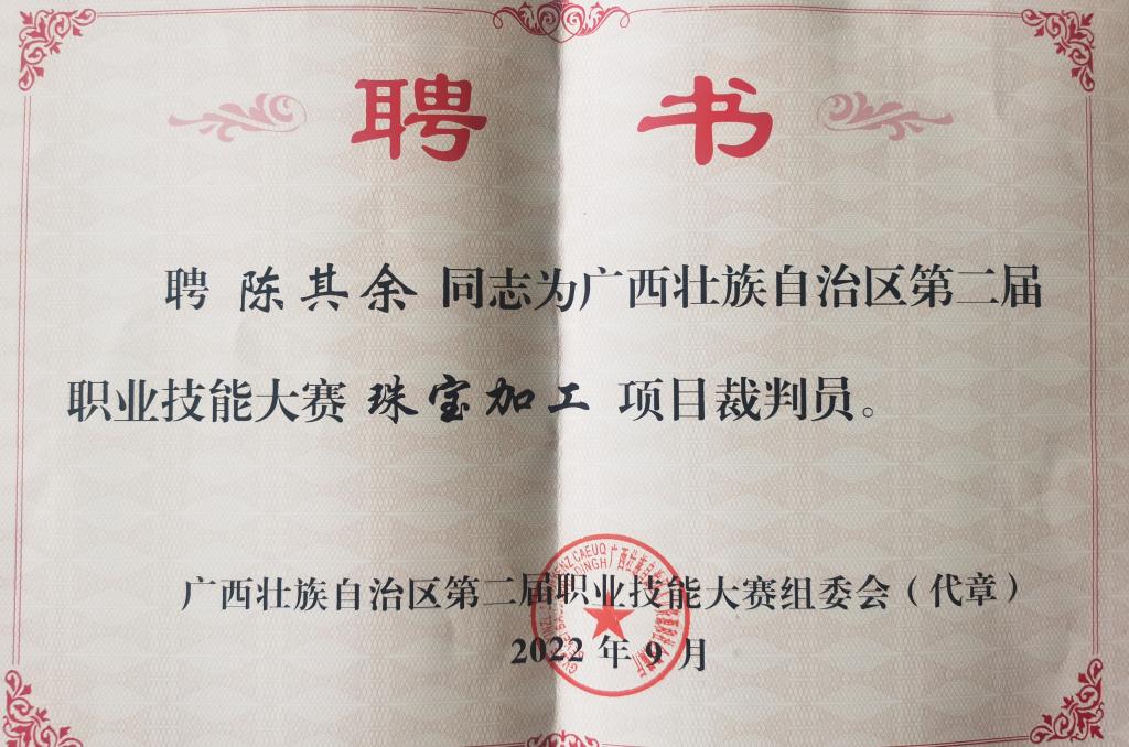 9月21日—25日,文博学院教师陈其余受广西壮族自治区人力资源和社会保障厅邀请,前往广西玉林市作为世界技能大赛国家集训基地(四川)代表参加广西第二届职业技能大赛珠宝加工项目执裁工作。