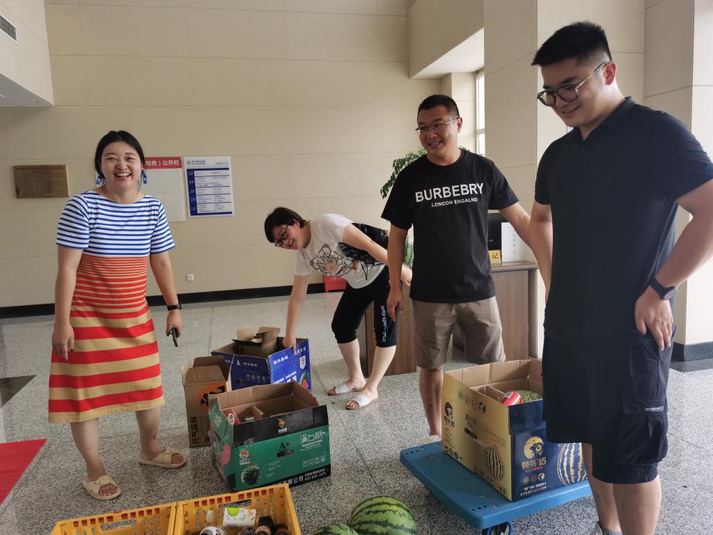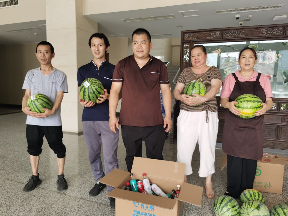 慰问活动中,工会清凉使者们分别为坚守一线的校党政办、党委组织人事部、纪委办、学工部、保卫处、教务处、基建处、培训中心、信息办、校史馆、后勤服务中心、车班、防疫一线等教职员工送去清甜爽口的大西瓜、青提、荔枝和各类清凉饮品等。校工会特别叮嘱各部门教职员工要注意高温下的安全作业,注意防暑降温,注意高温环境下的自我保护,鼓励大家合理安排工作休息时间,平安度过暑期。